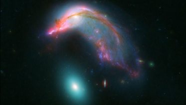 The post These Interacting Galaxies Resemble a Penguin Guarding an Egg appeared first on SciTechDaily.